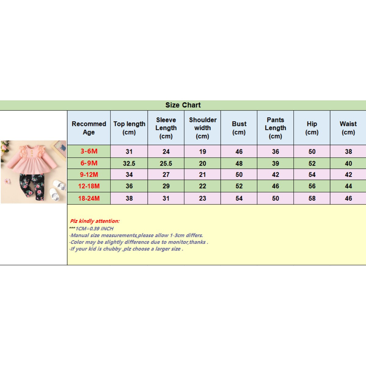 2PCS Infant Girl Clothes Set Long Sleeved Lace Top+Flower Pants Fashion Cute Spring&Autumn Outfit for Toddler Girl 3-24 Months