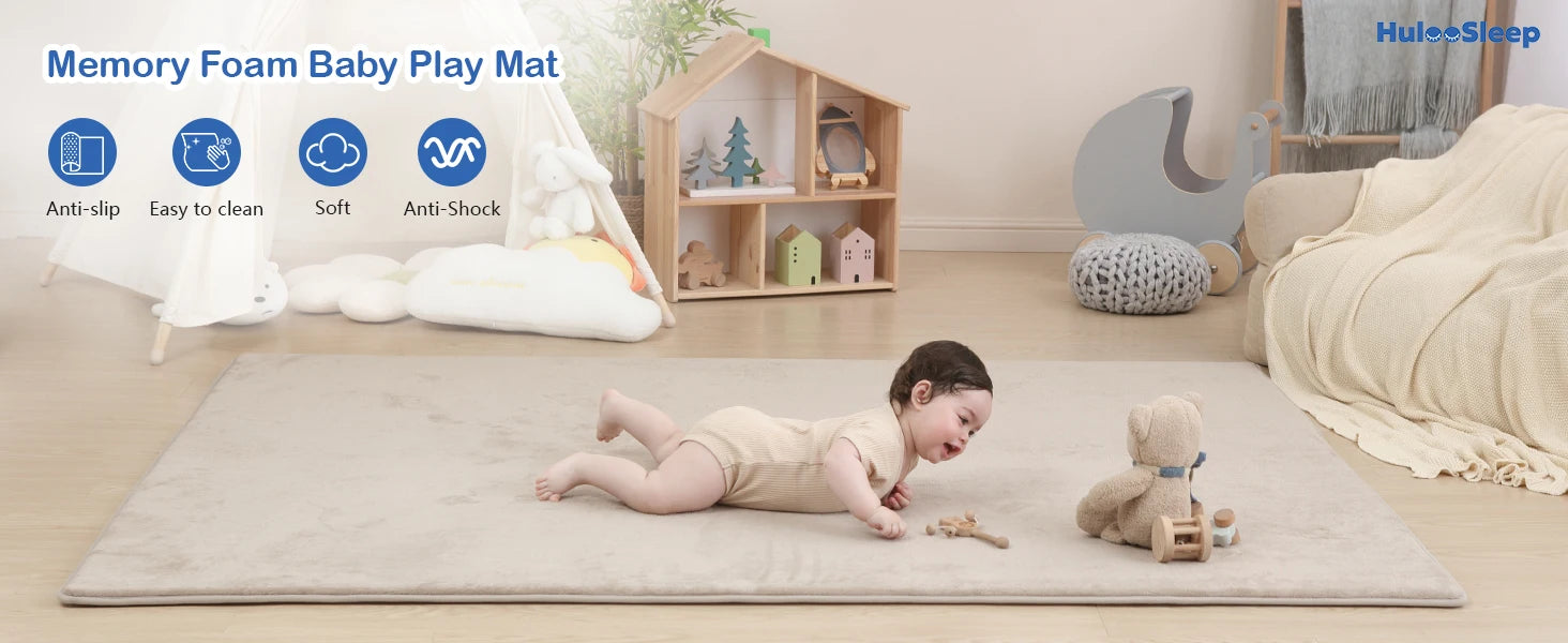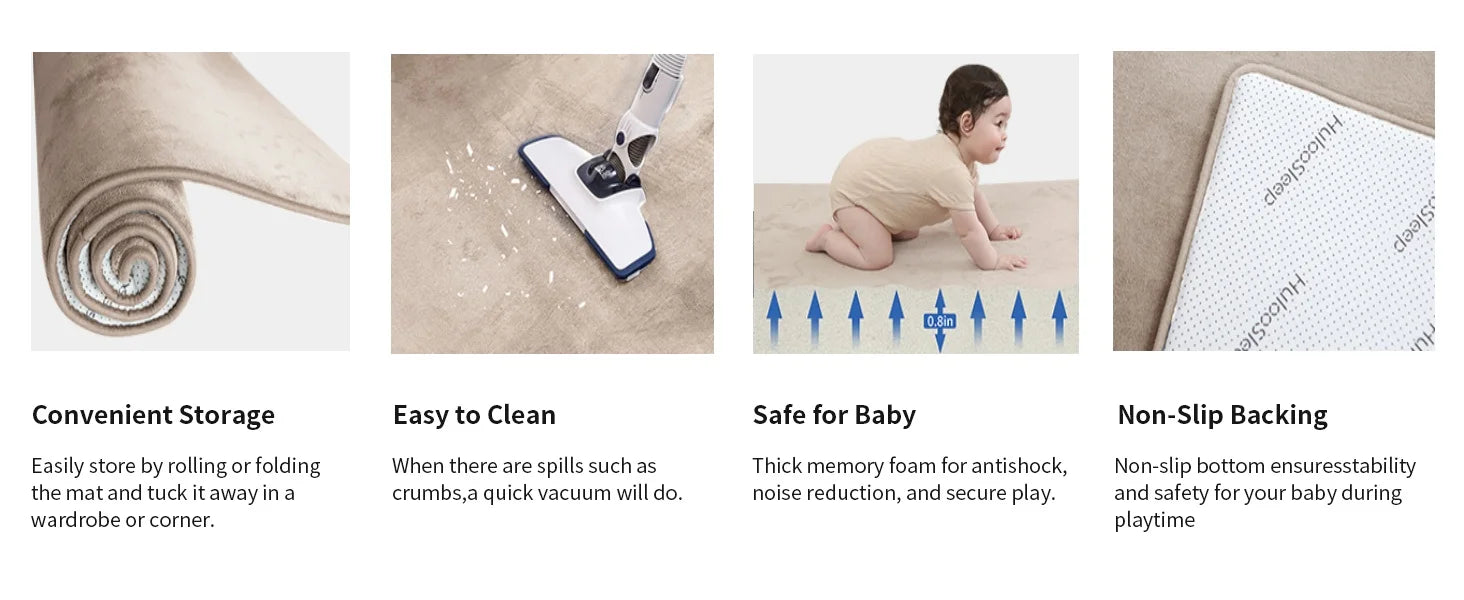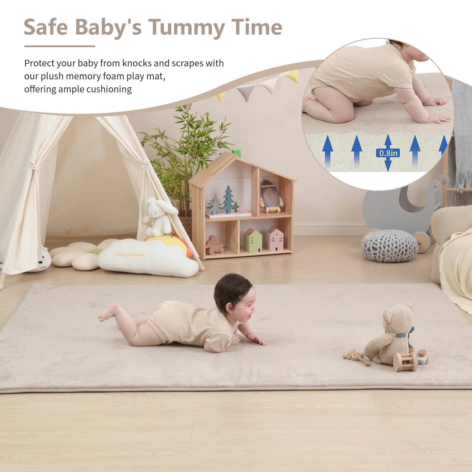 Khaki Baby Play Mat for Floor Water-Repellent Baby Game Crawling Mat Soft Velvet Non-Slip Baby Activities Rug Newborn Items
