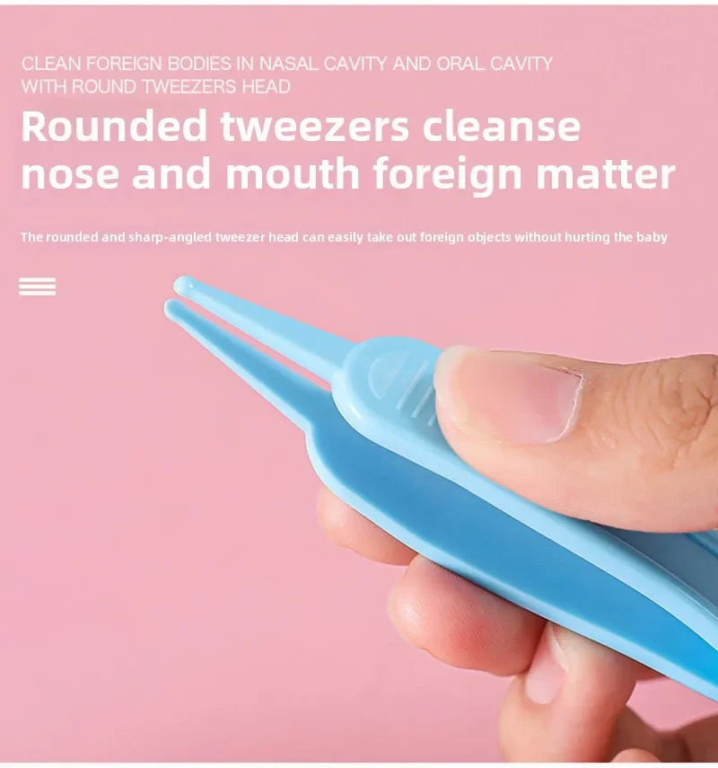 The set features a gentle nasal suction device for clearing stuffy noses and a precision nail clipper designed for tiny fingernails. Every piece is sized perfectly for newborn care, making those first months easier and more confident for new parents.